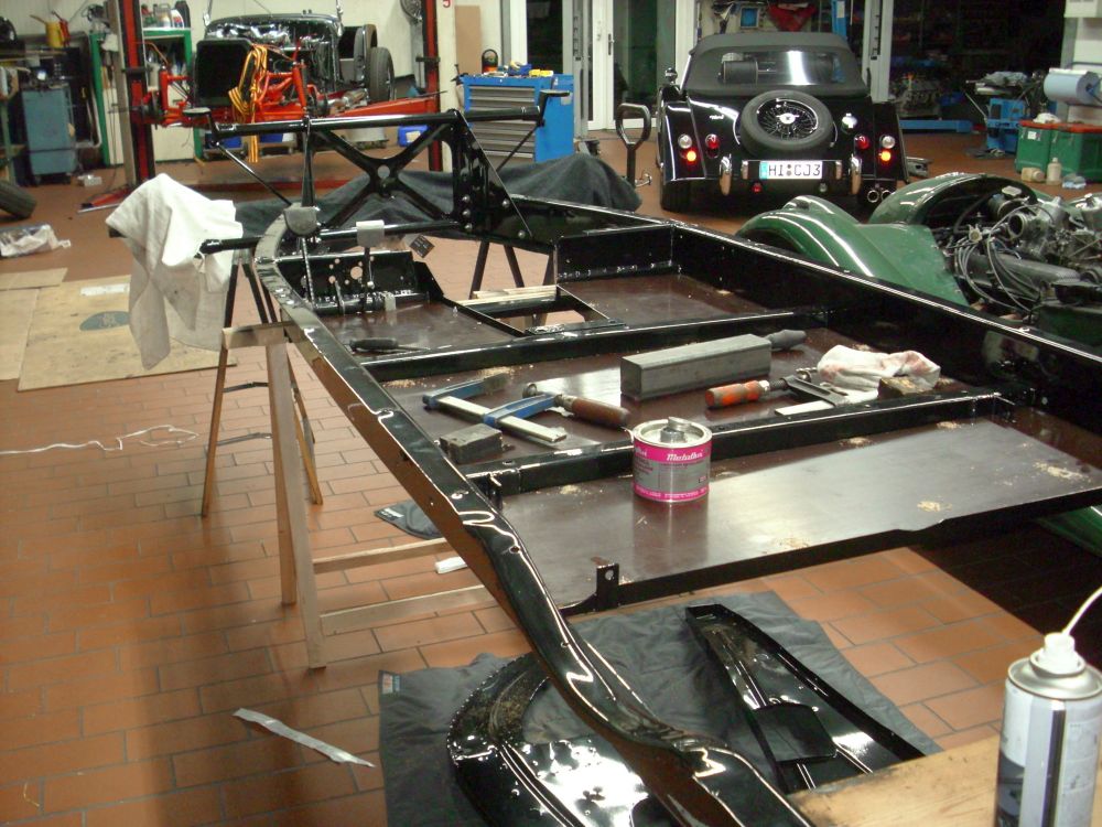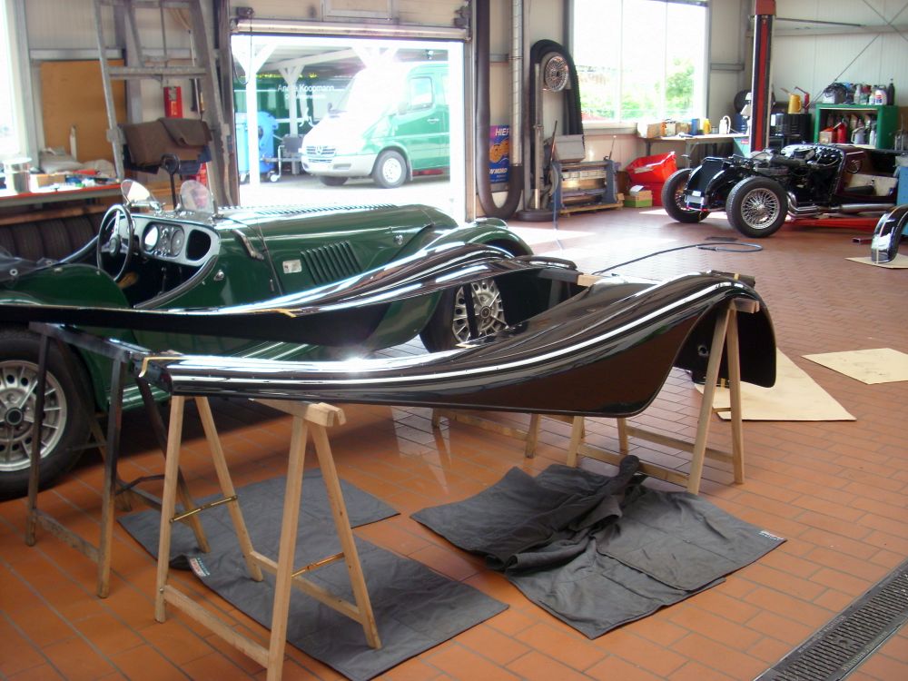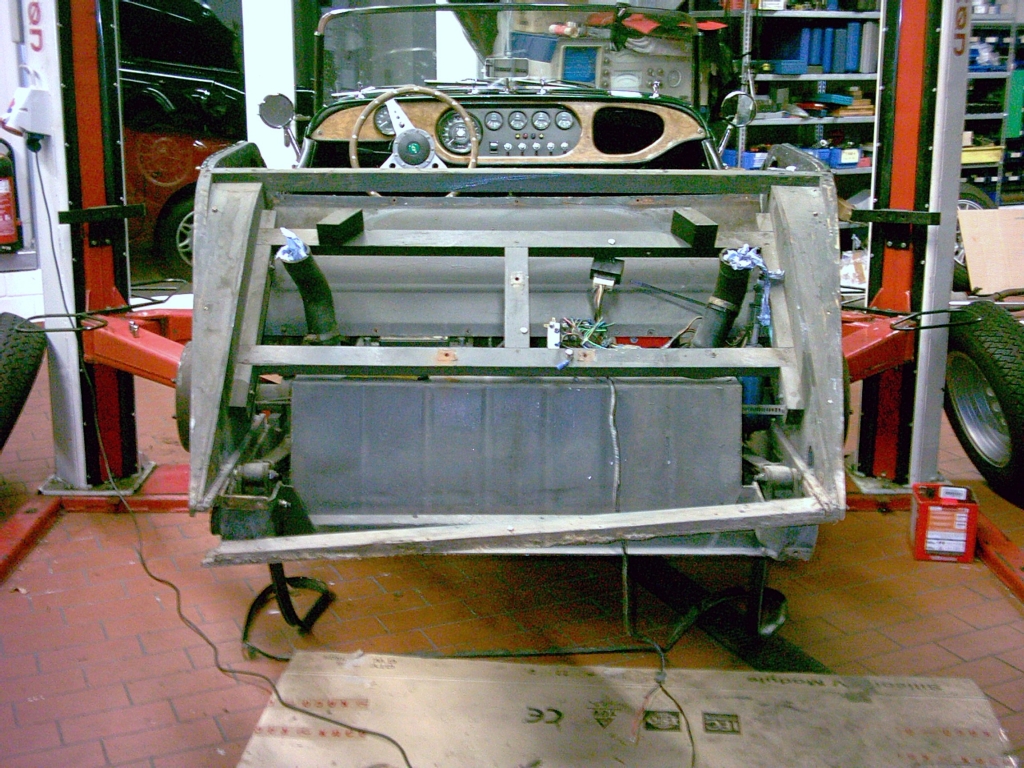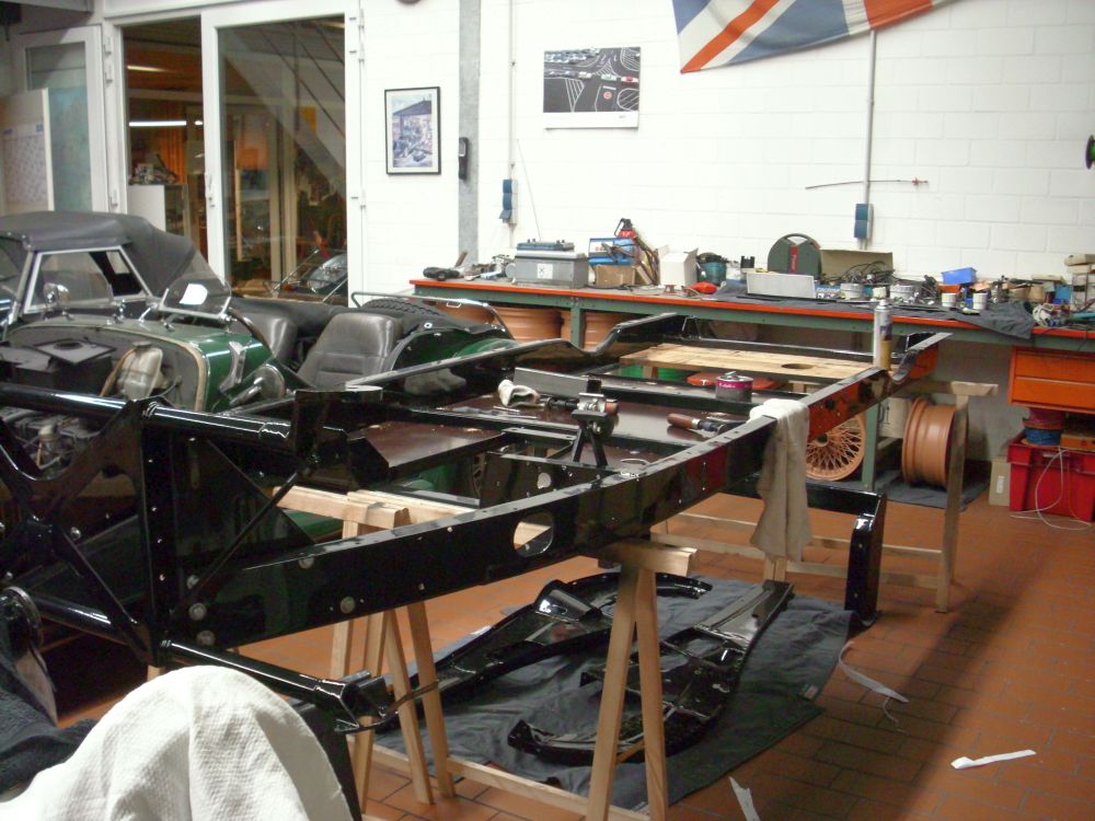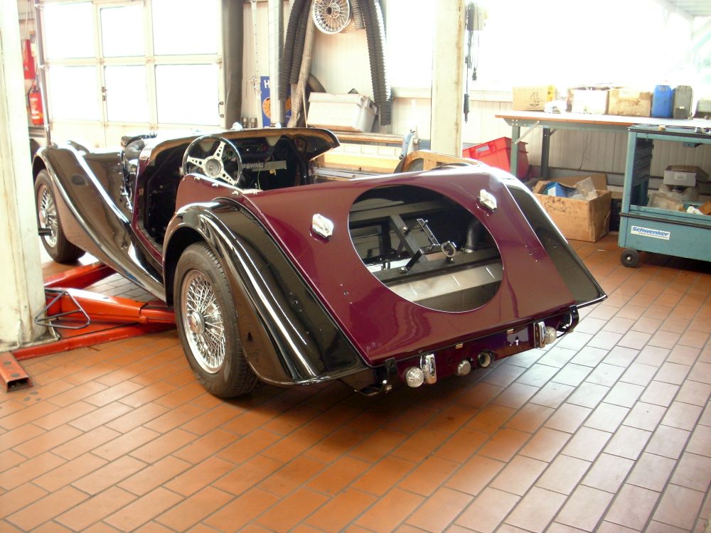 Bilder einer aktuellen Restaurierung eines Morgan Plus 8 von 1989.